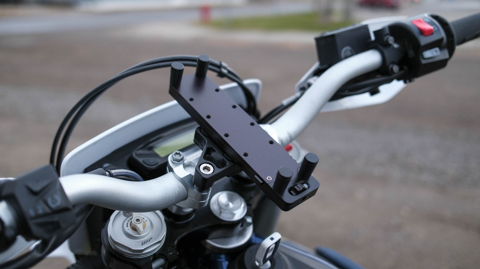 The Bar Tab integrates vibration dampening, and locates the mount dead center on all KTM / Husky / GasGas and other bikes with 90mm bar clamp bolt spacing. Clears the factory one-piece upper bar mount too!