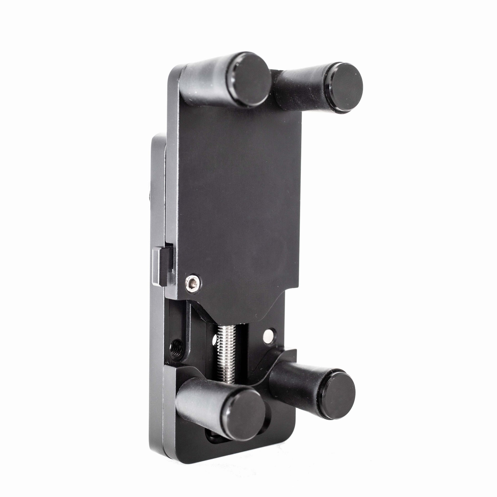 The Perfect Squeeze is made from precision-machined aluminum and stainless steel, and it works with almost any phone and any case. It even features 10-32 threaded holes on the back in AMPS pattern!