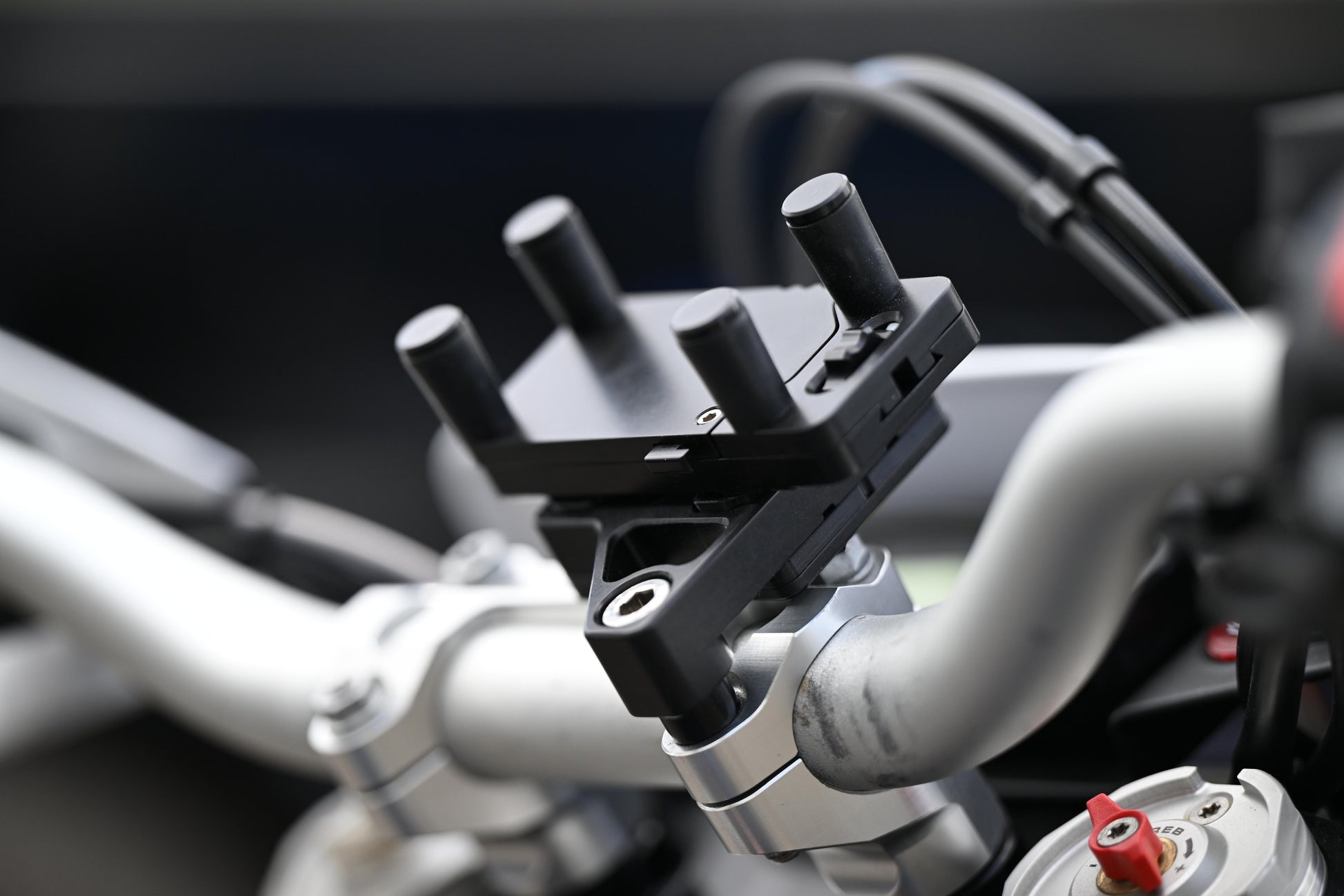 When mounted in the Portrait orientation, your device shifts over to preserve clearance for front brake lines throughout suspension travel and keeps your OEM gauge cluster easily readable.